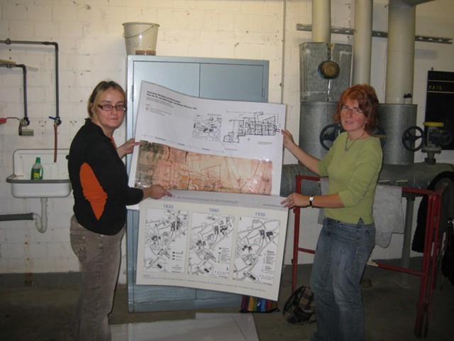 Kaiserlich sieht es noch gar nicht aus im Untergeschoss des Aachen Fensters. Doch mit handwerklichem Tatendrang lassen wir in wenigen Stunden einen kleinen, feinen Ausstellungsort entstehen. Mit frischer Farbe, Objekten und Infotafeln bekommt Aachens Badegeschichte mitten im Zentrum einen vorläufigen Platz.